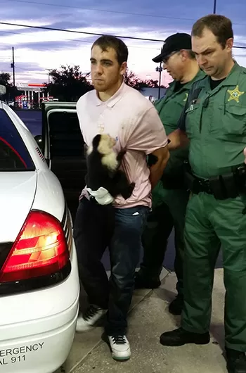As the cops were cuffing Cody and getting ready to take him to jail, the Florida Fish and Wildlife Conservation Commission came to take possession of the monkey. And they let him and Cody have one last goodbye kiss on the lips.