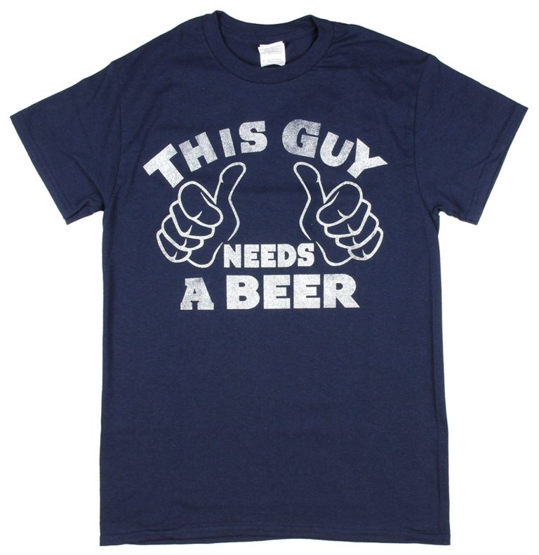 He could have picked any type of beer, but went with Natural Ice . . . because you know you're classy when you're wearing a "This Guy Needs a Beer" shirt.